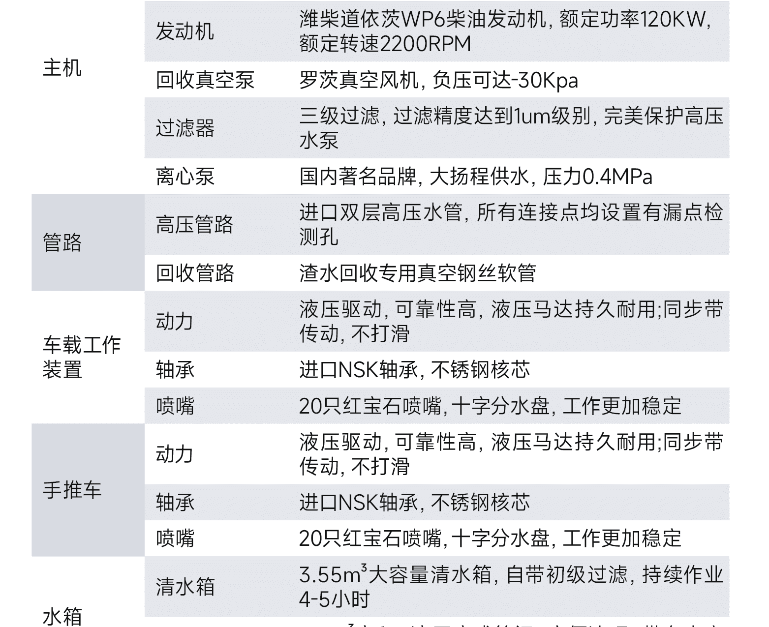 洗線最大速度:1500m/h(車載工作裝置)