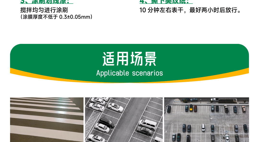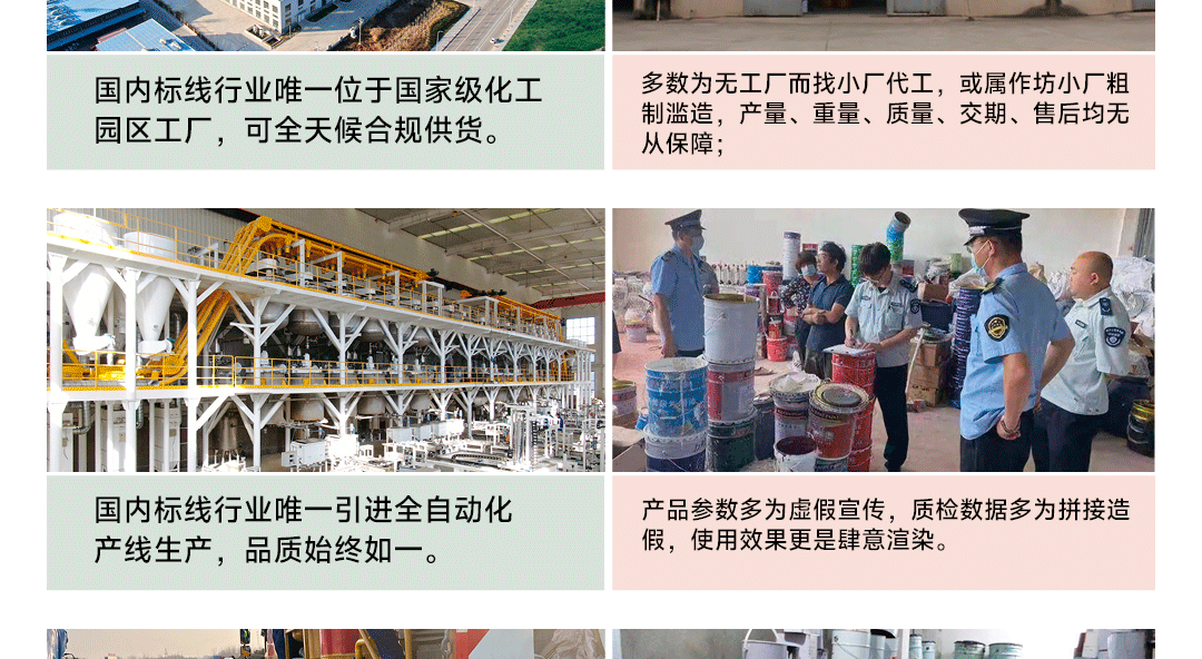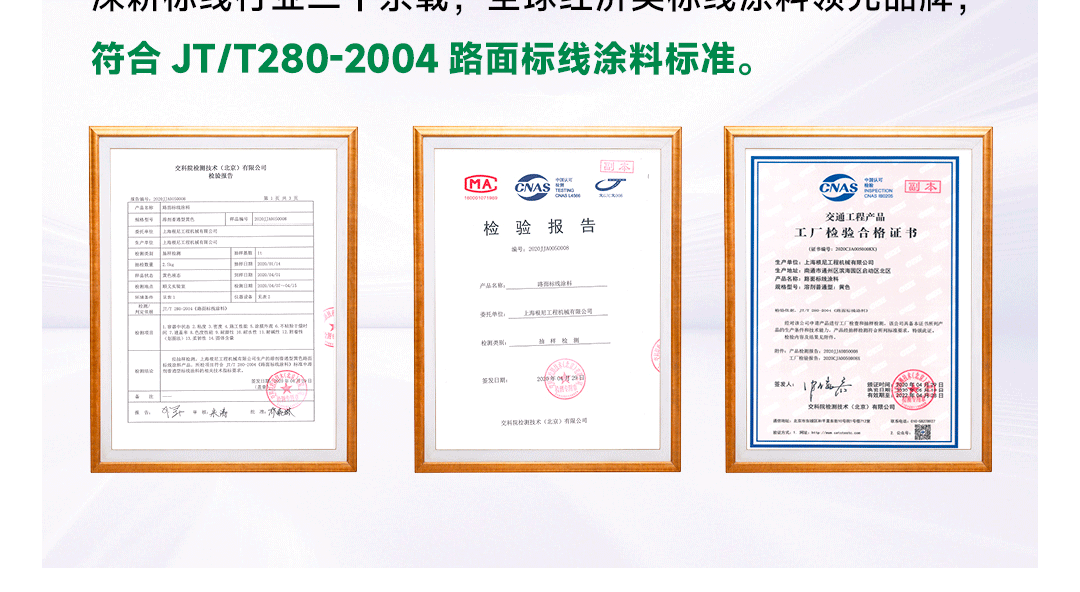 ?專家測評:標(biāo)線特點:優(yōu)質(zhì)苯丙基料、金紅石鈦白/有機鉻黃顏料、多重優(yōu)質(zhì)助劑、復(fù)合工藝、標(biāo)準(zhǔn)化檢測;色澤好、覆蓋強、宜施工、不起泡,耐磨耐候、品質(zhì)一致性好;執(zhí)行標(biāo)準(zhǔn):符合JT/T280-2004主要標(biāo)準(zhǔn);