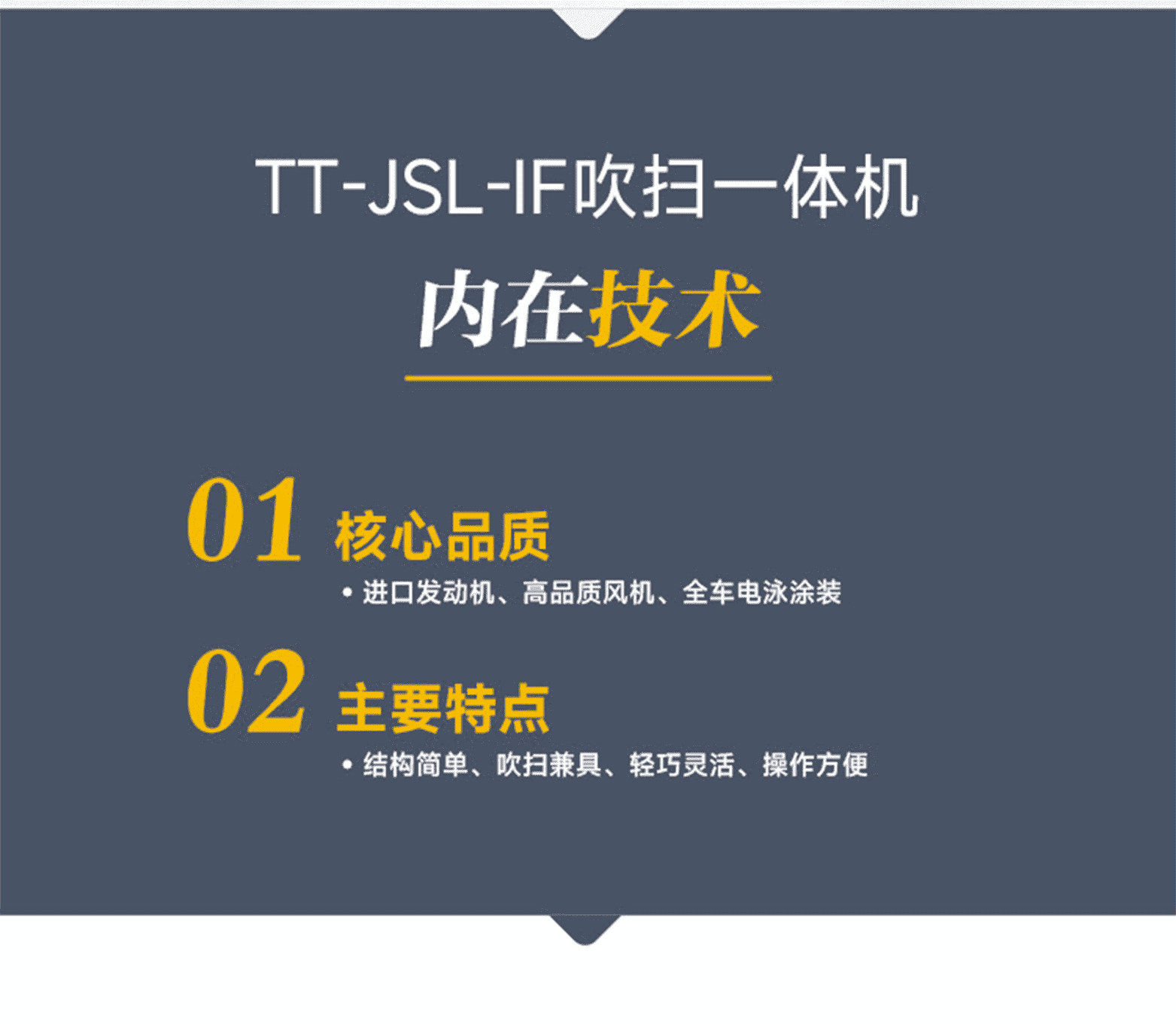進口發動機、高品質風機、全車電泳涂裝。結構簡單、吹掃兼具、輕巧靈活、操作方便