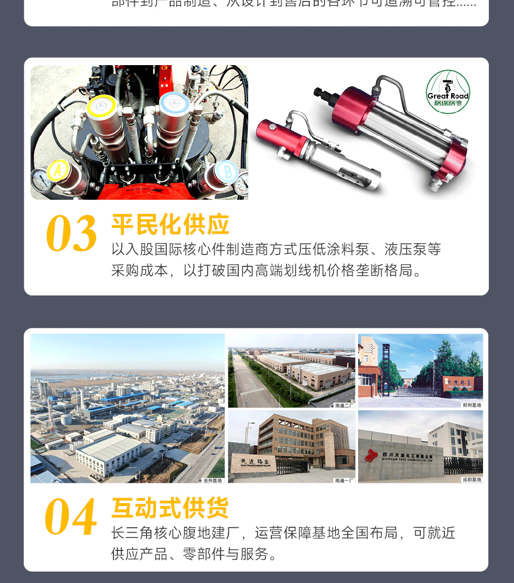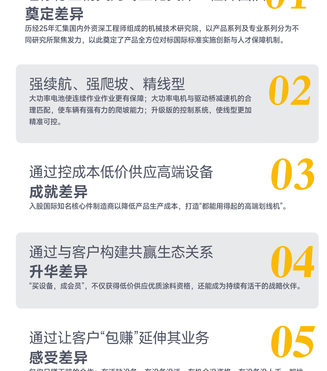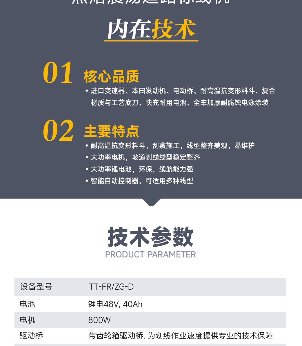 ?專家測(cè)評(píng):主要特點(diǎn):耐高溫抗變形料斗,刮敷施工,線型整齊美觀,易維護(hù)。大功率電機(jī),坡道劃線線型穩(wěn)定整齊。大功率鋰電池,環(huán)保,續(xù)航能力強(qiáng)。智能自動(dòng)控制器,可適用多種線型