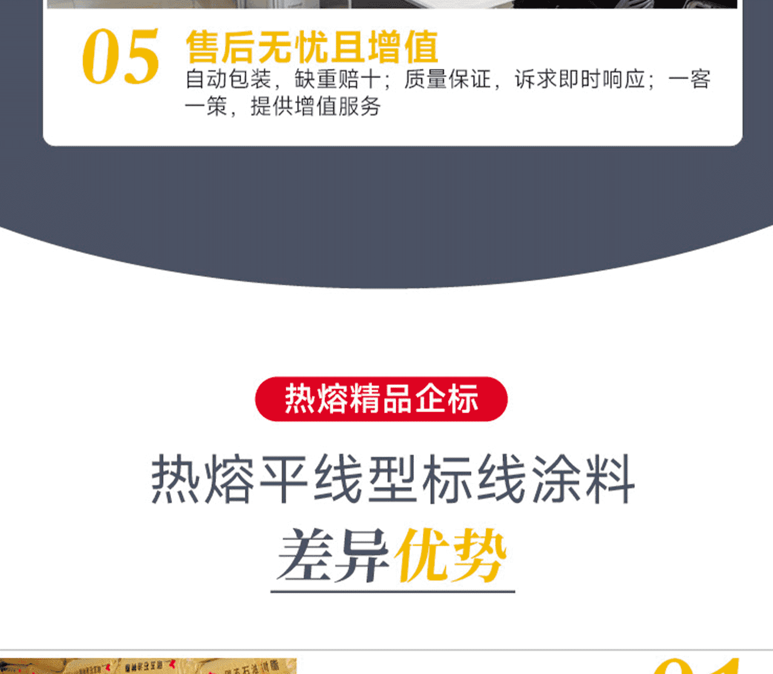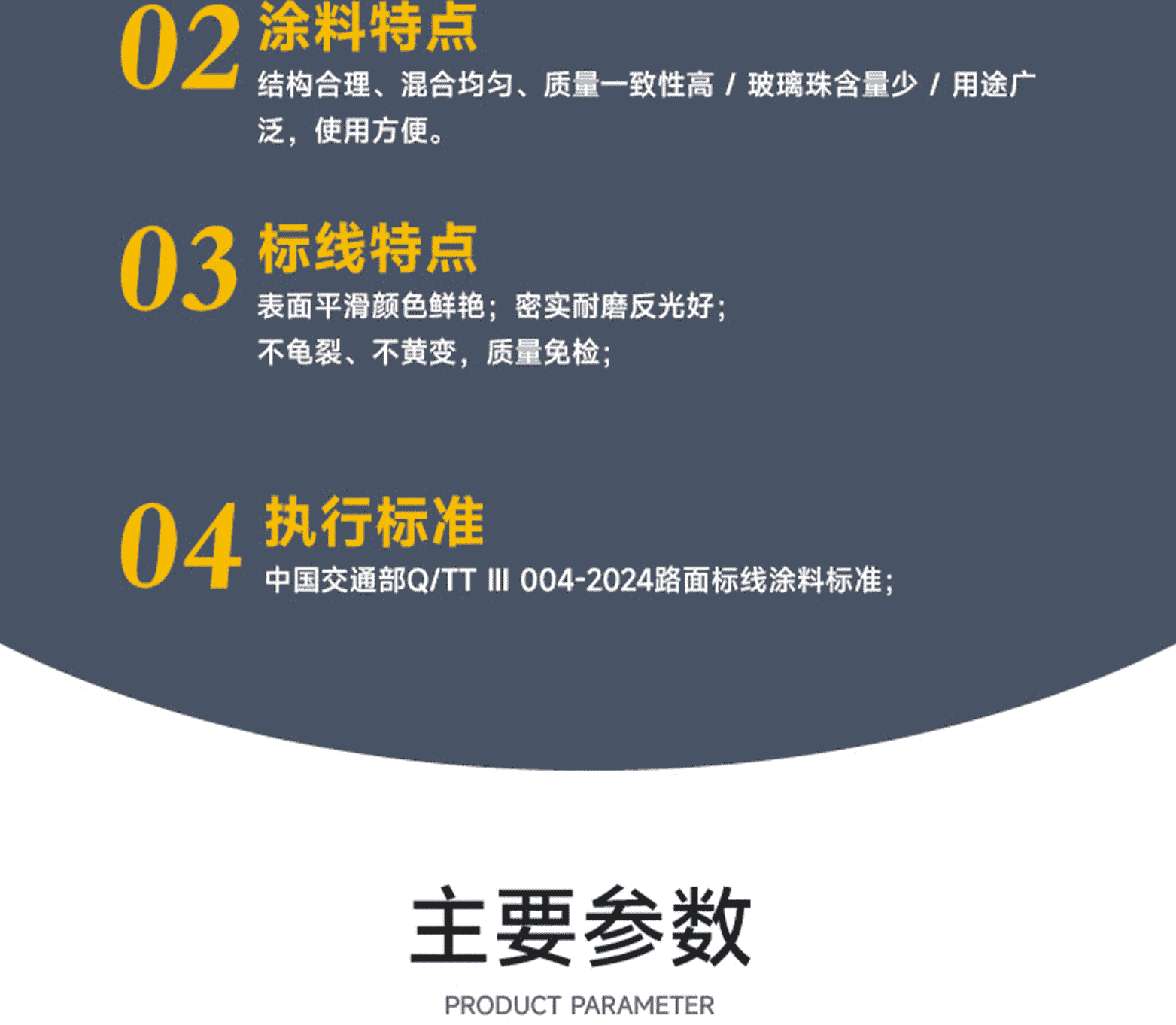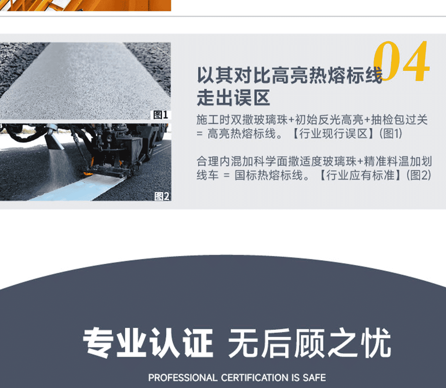 ?專(zhuān)家測(cè)評(píng):涂料特點(diǎn):結(jié)構(gòu)合理、混合均勻、質(zhì)量一致性高 / 玻璃珠含量少 / 用途廣泛,使用方便。標(biāo)線特點(diǎn):表面平滑顏色鮮艷;密實(shí)耐磨反光好;不龜裂、不黃變,質(zhì)量免檢;