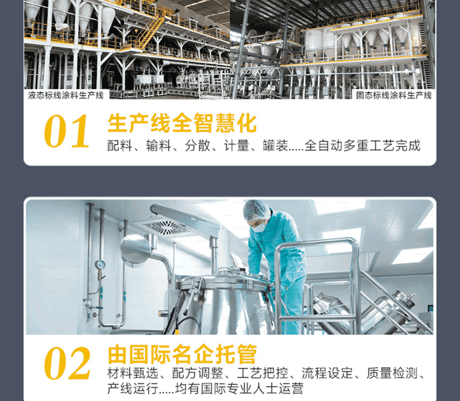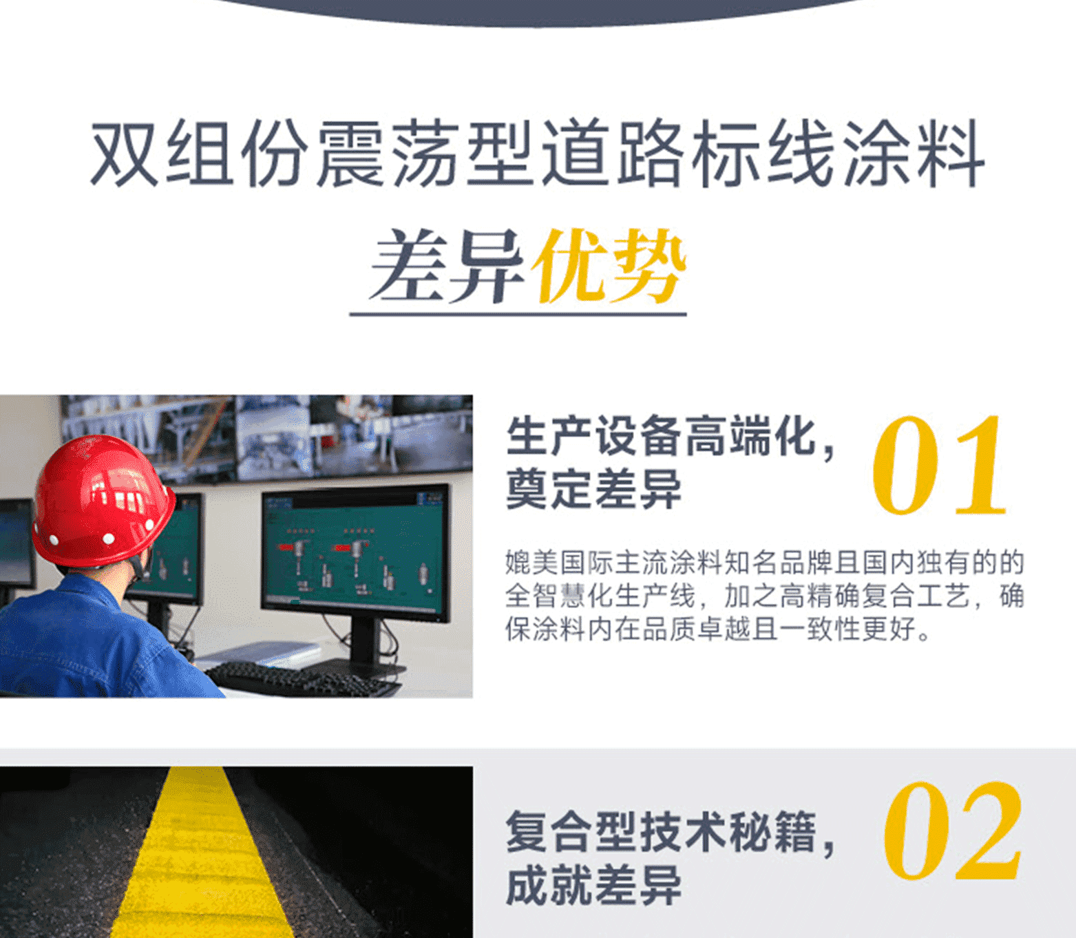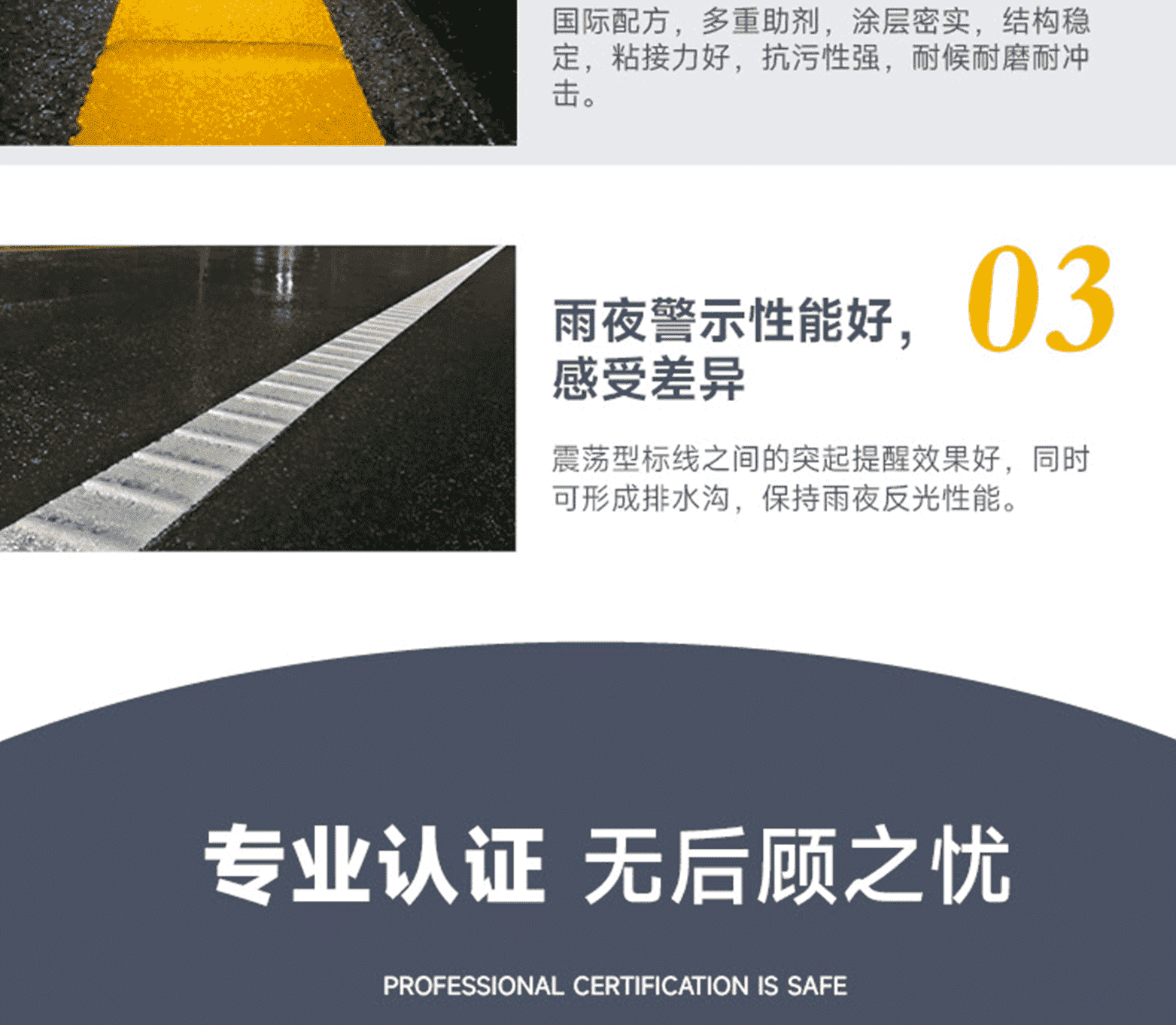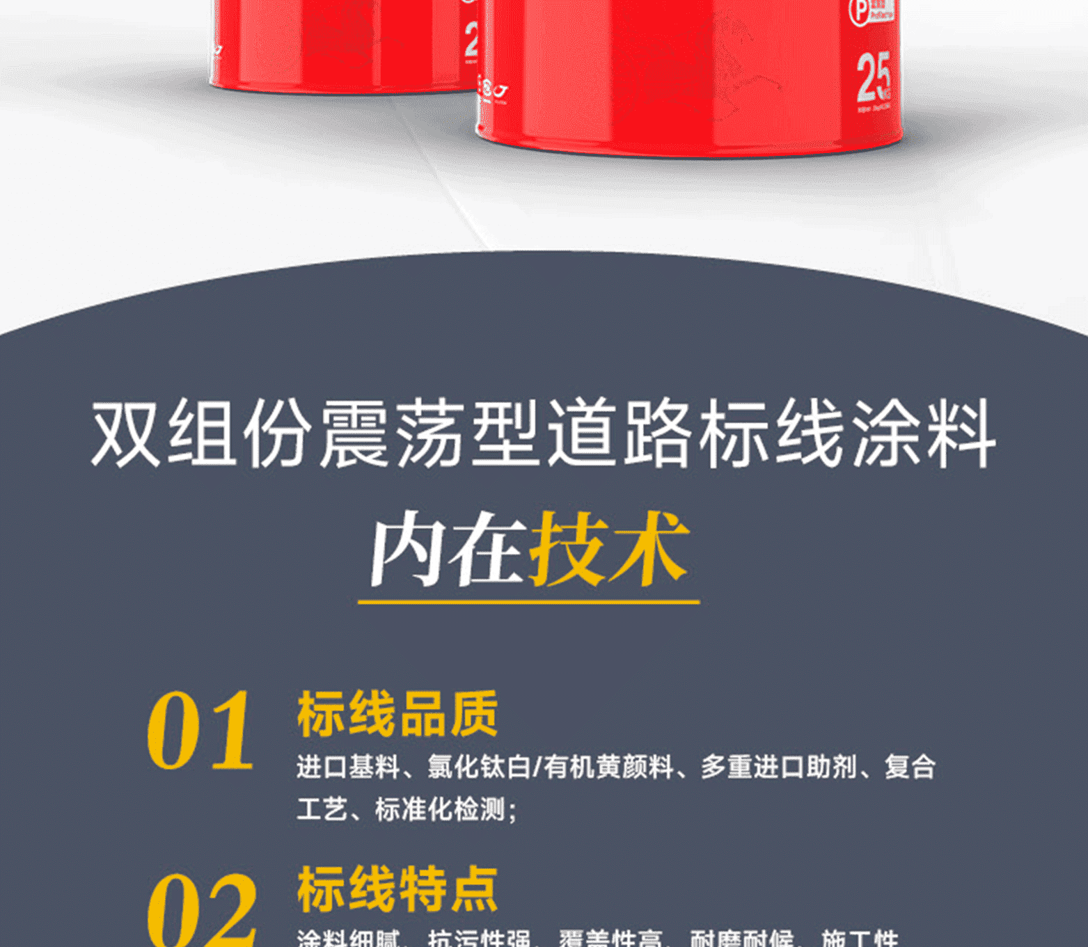 ?專家測(cè)評(píng):標(biāo)線品質(zhì):進(jìn)口基料、氯化鈦白/有機(jī)黃顏料、多重進(jìn)口助劑、復(fù)合工藝、標(biāo)準(zhǔn)化檢測(cè);標(biāo)線特點(diǎn):涂料細(xì)膩、抗污性強(qiáng)、覆蓋性高、耐磨耐候、施工性好、抗沉不起泡;